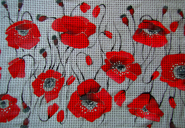 Needlepoint canvas 'Crimson Poppies' by Hromuh Nataliya