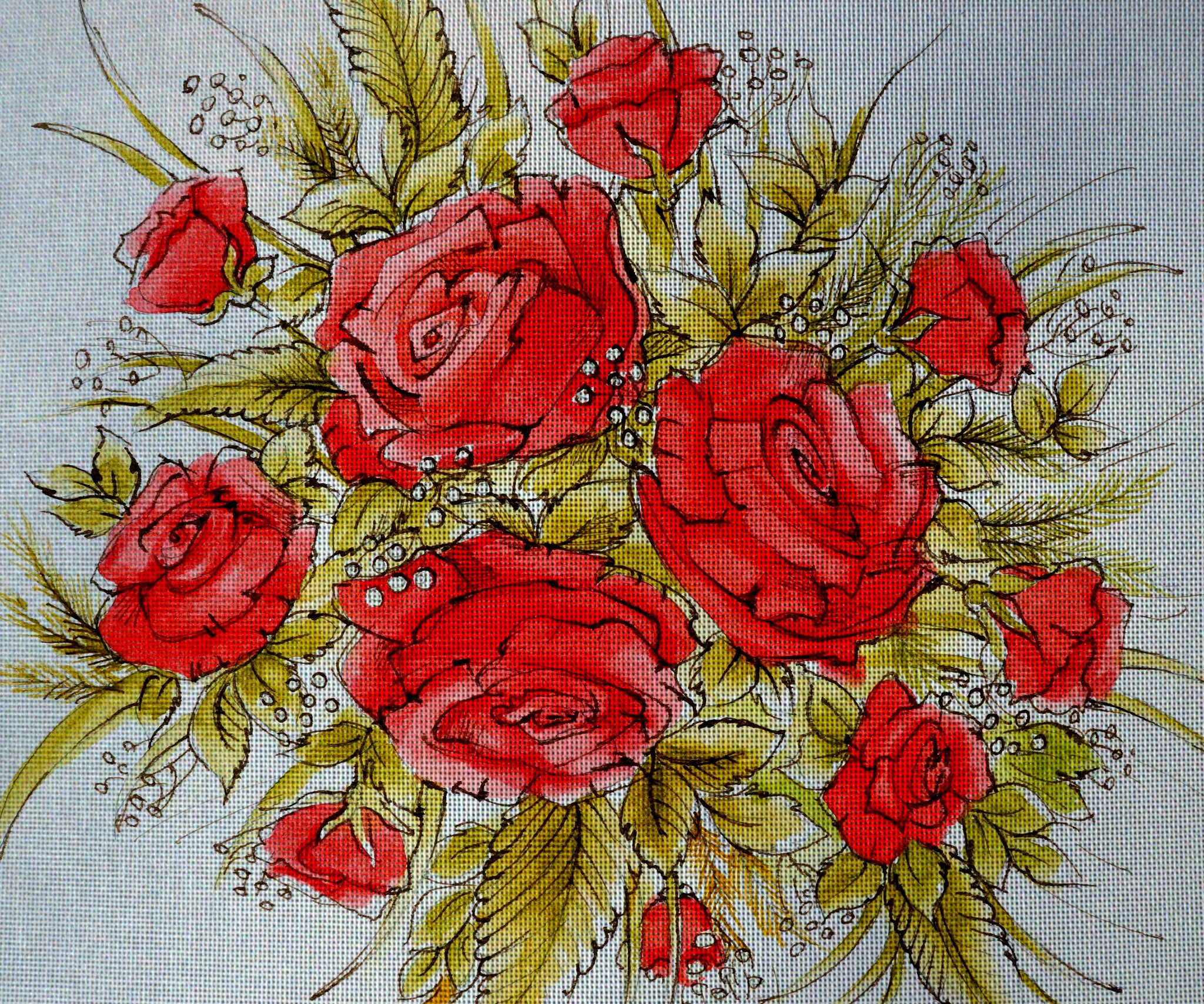 Needlepoint canvas 'Bunch of red roses' by Hromuh Nataliya